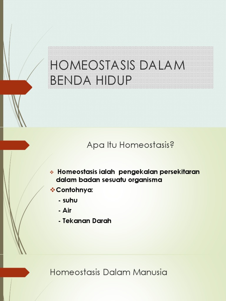 3.1 homeostasis dalam benda hidup bab 3 : Homeostasis homeostasis adalah suatu keadaan komposisi kimia dan fisiokimia yang konstan pada medium internal organisme. Explain with examples the systems involved with homeostasis in humans and. Semua organisme hidup berusaha untuk homeostasis. Pengawasan konstan dan regulasi lingkungan internal sangat penting untuk kelangsungan hidup.