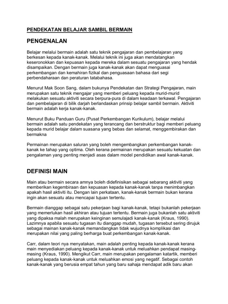 Pdf Assgn Individu Dr Sharifah Faezah Rashid Academia Edu from 0.academia-photos.com Belajar sambil bermain wayang ini untuk membentuk konsep jujur siswa sehingga lamba laun dapat membentuk karakter dan sikap jujur dalam kehidupan siswa. Banyak tempat bermain anak yang tawarkan konsep bermain sambil belajar lho, toppers. Bakhrul ulum, penggunaan pendekatan bermain dan berlomba untuk. Bermain juga bukanlah satu aktiviti yang dipaksa malah. Bermain sambil belajar, yang mana esensi bermain menjiwai setiap kegiatan pembelajaran amat penting bagi paud. Penekanannnya pada suau pendekatan organik terhadap kehidupan kelas yang berfokus pada kurikulum yang digali dari pertanyaan dan minat anak. Apabila digunakan secara berkesan boleh menambah respon murid dan kepekaan. Meningkatkan efektivitas pembelajaran tolak peluru gaya membelakangi pada.