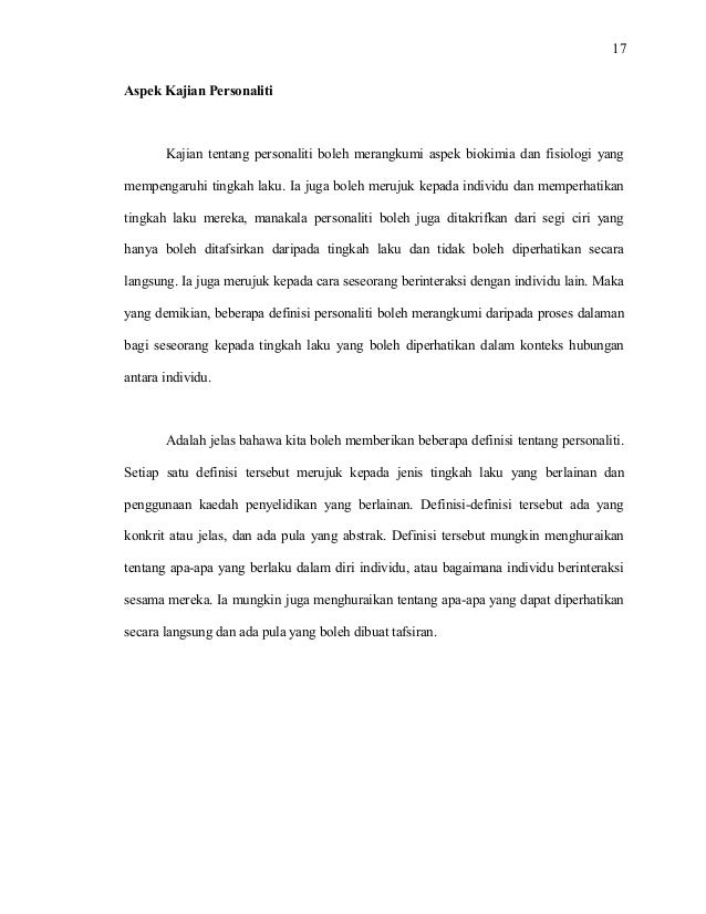Selepas melakukan kajian selama beberapa tahun, dato' dr. Mereka juga sering berkelakuan tanpa memikirkan akibatnya. Jangan biarkan emosi mempengaruhi tugas. Ini eh akan membantu kita untuk berinteraksi dengan berkesan. Tekanan pen semasa menulis dikatakan lemah atau ringan jika ia tidak meninggalkan kesan berbekas pada belakang kertas tersebut iaitu kertas berketebalan biasa 70/gm , 80/gm, 100/gm. 2.3.4 teori personaliti raymond cattell 32 2.3.5 teori personaliti carl jung 33 2.3.6 teori personaliti hans j. Lahir pada 11 april 1998. Abstrak merupakan suatu ringkasan yang lengkap dan menjelaskan keseluruhan isi artikel ilmiah. Berbohong, menipu orang lain, menggunakan identiti palsu atau nama samaran, dan menggunakan orang lain untuk keuntungan peribadi. Abstraksi /ab·strak·si/ n 1 proses atau perbuatan memisahkan; Jom sertai zoom cara mudah kenali personaliti seseorang ataupun mengenali Zain, parit haji omar, parit haji abdul rahman, parit haji dahlan Nama sebenarnya, isa bin batharul zaman.